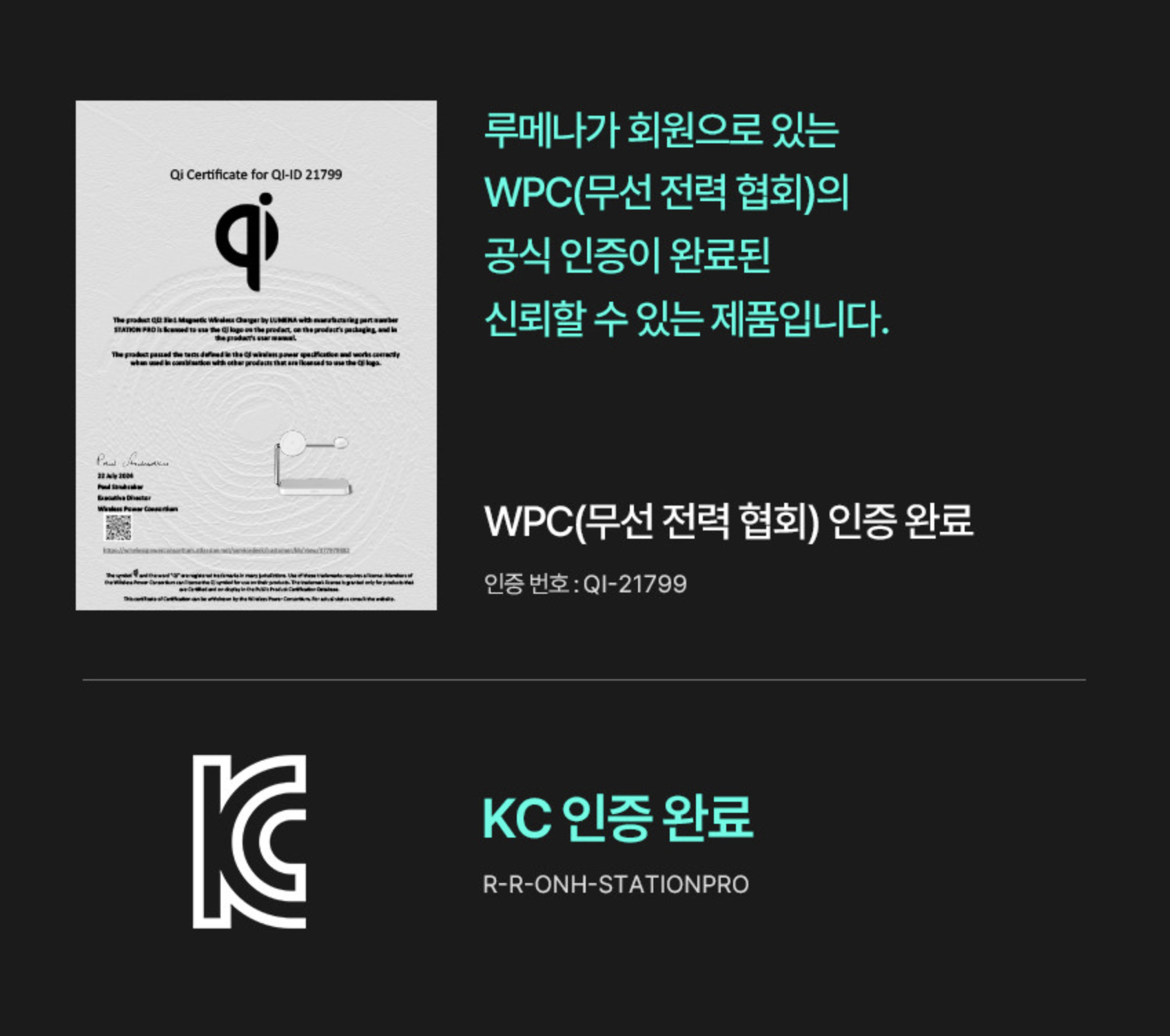 위와 같이 WPC의 Qi2 공식 인증을 받은 것을 볼 수 있습니다.