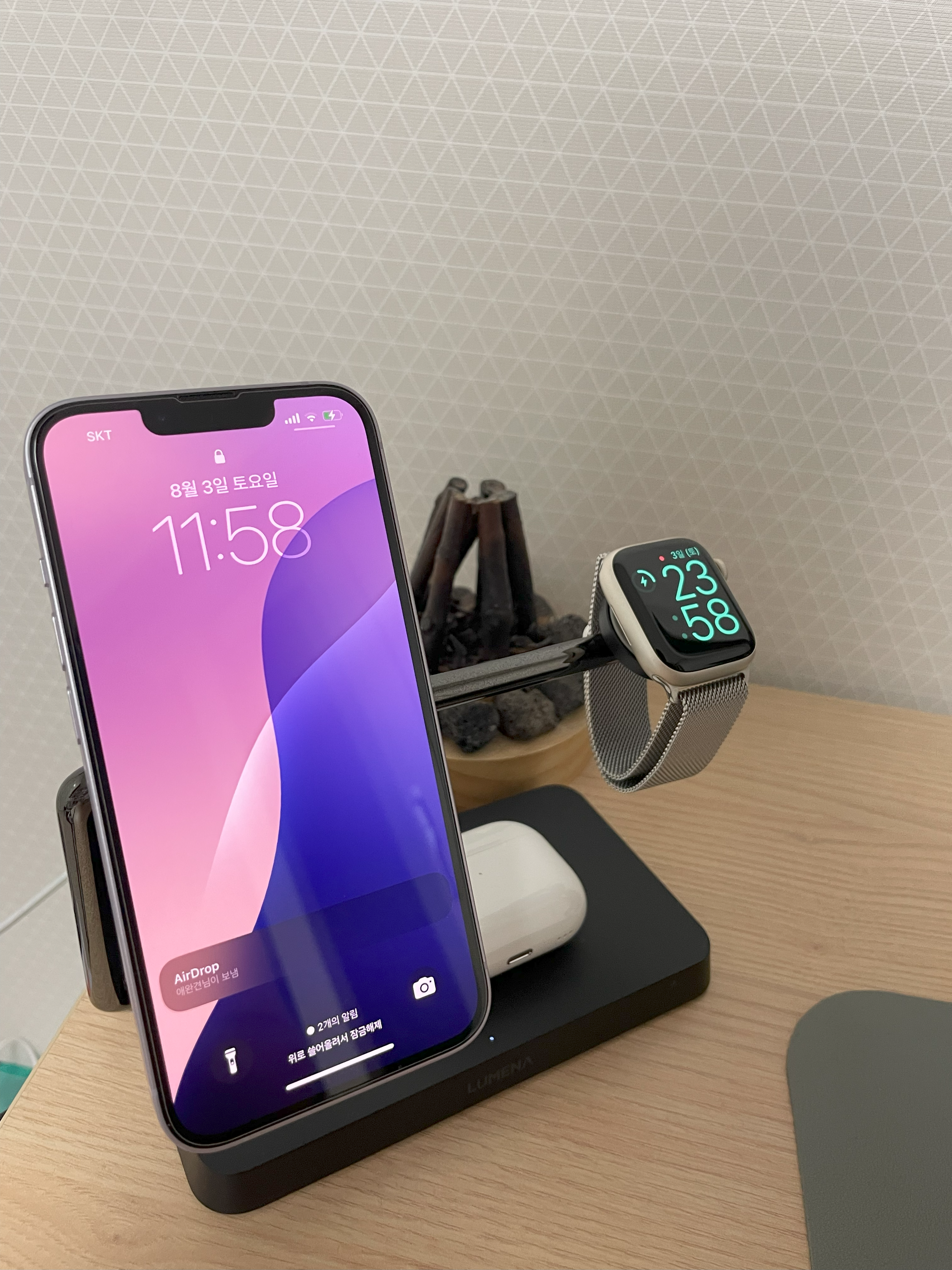 3 in 1 방식으로 고속 충전과 애플워치, 에어팟도 충전 가능