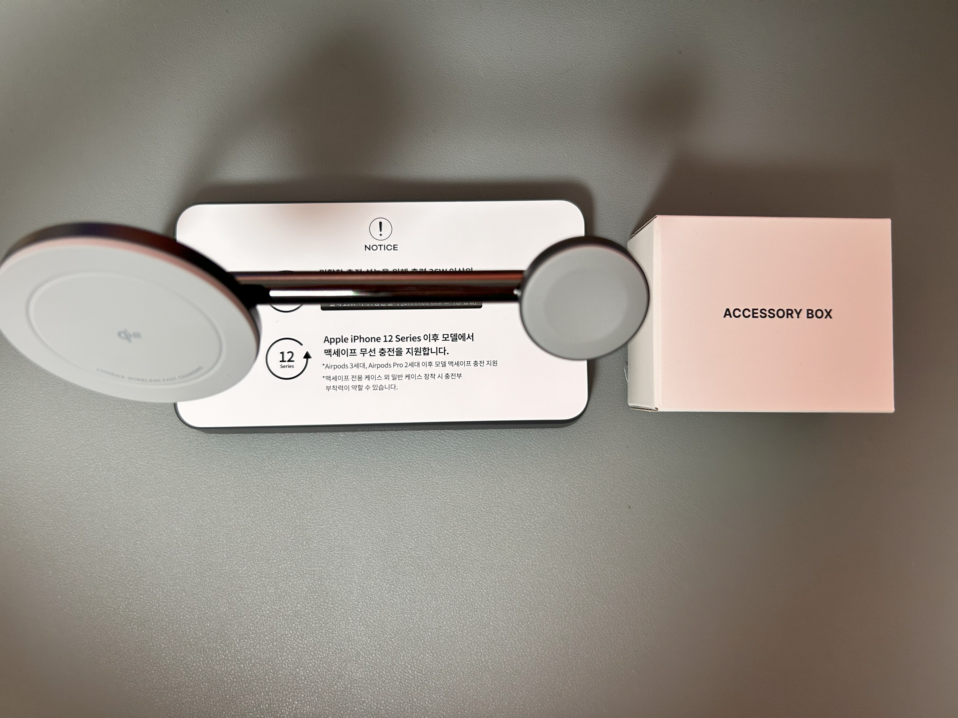 에어팟을 충전하는 곳에 올려도 최대 7.5W로 무선 충전을 지원하는 모습입니다.에어팟 부분에도 맥세이프 자석이 있다면 에어팟 충전도 더더욱 편리하고 효율적으로 충전할 수 있을 것 같네요.