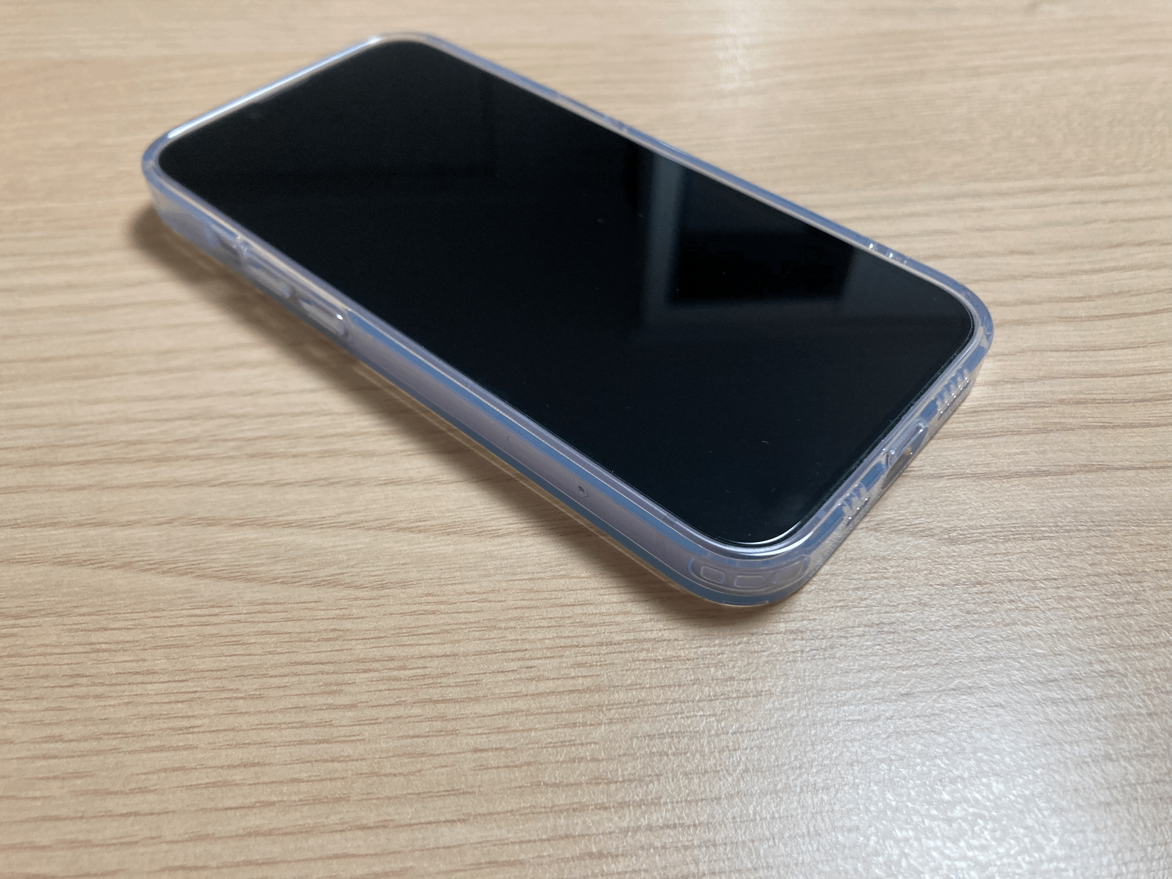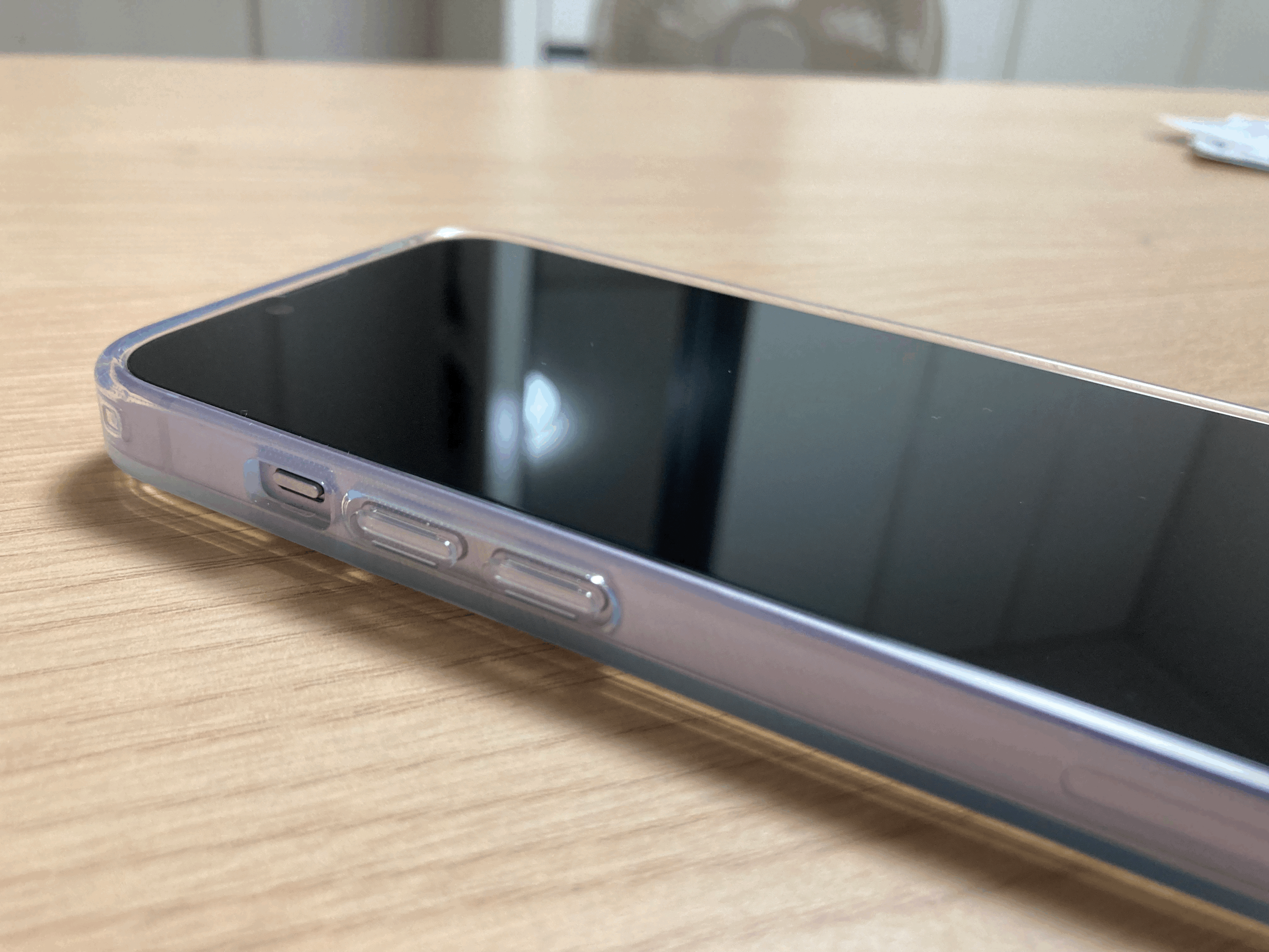 케이스 착용 시 전면 샷입니다. 테두리 TPU 부분이 디스플레이보다 더 위로 올라와서 강화유리 부착 시에도 보호가 잘 되는 모습입니다.